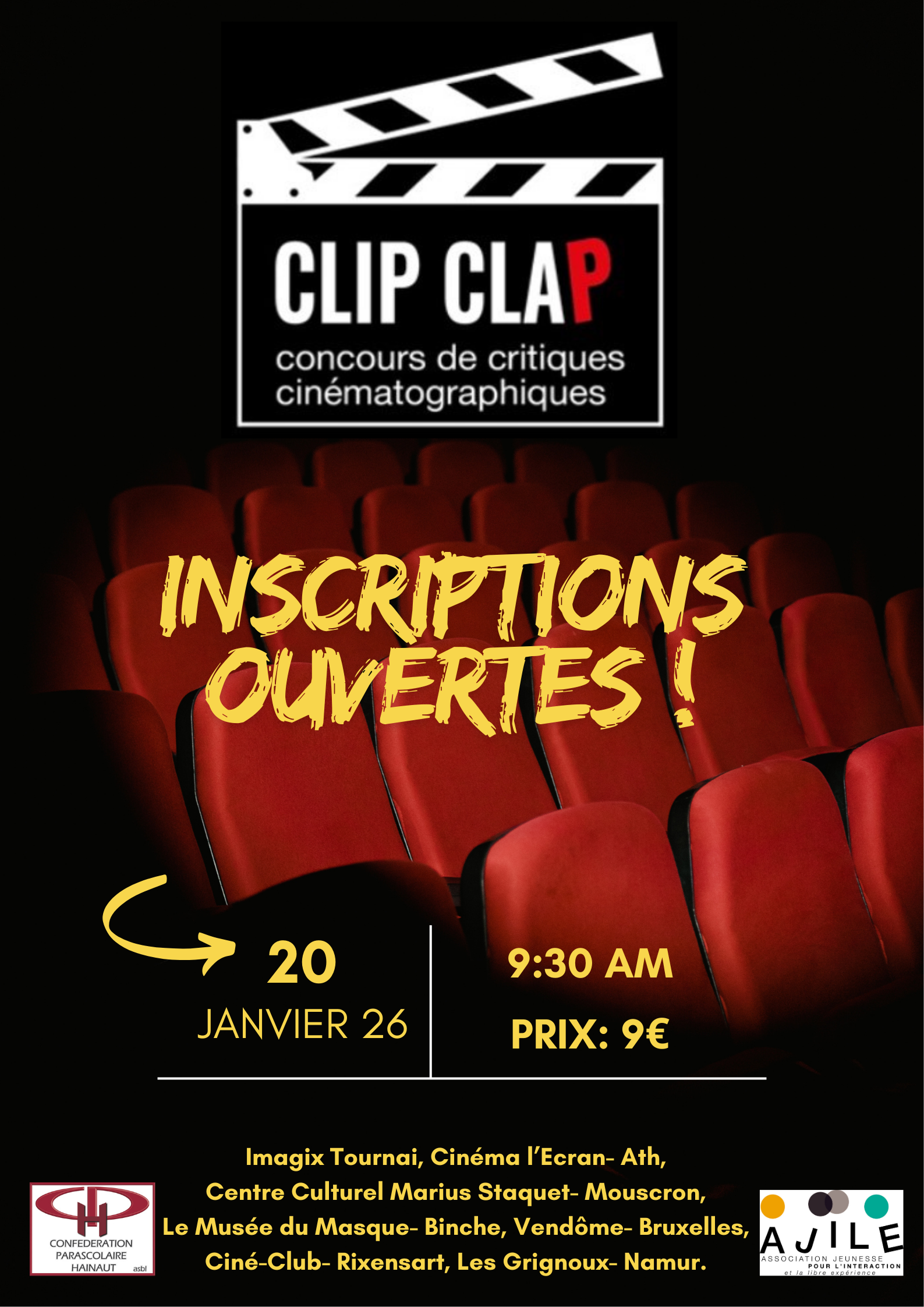 Le « Clip-Clap : concours de critiques cinématographiques » est une initiative de la Confédération Parascolaire Hainaut en collaboration avec Ramdam Le Festival du Film qui Dérange, et CinéLigue de Lille.